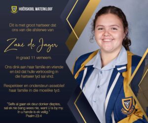 Zane de Jager’s legacy as a cherished student of Hoërskool Waterkloof will remain in the hearts of all who knew him. May his soul rest in peace.